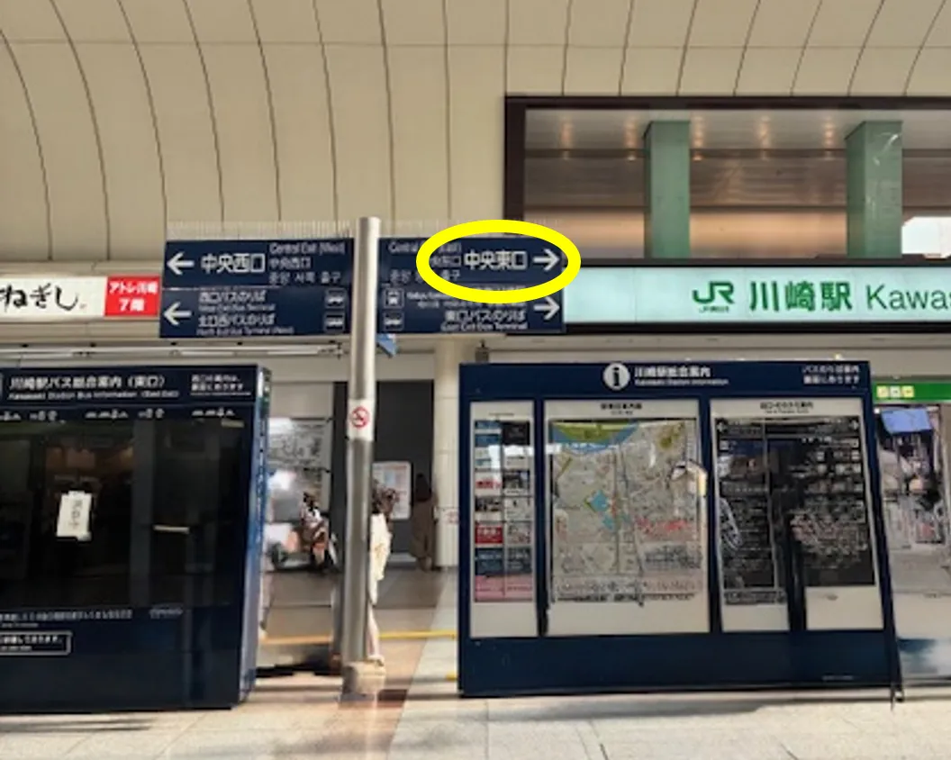 ①JR川崎駅・中央東口方面に向かいます。