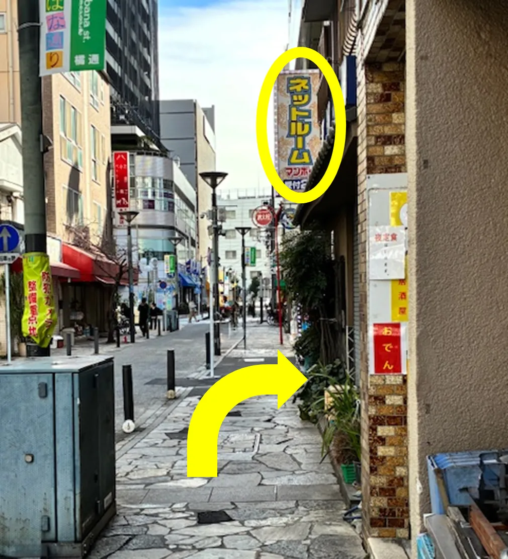 ⑭ネットルーム・マンボーの手前を右に曲がる
