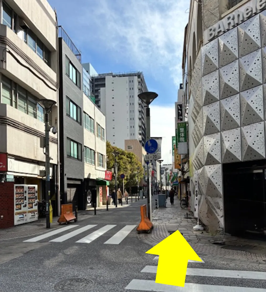 ⑬横断歩道を渡ってさらに直進する