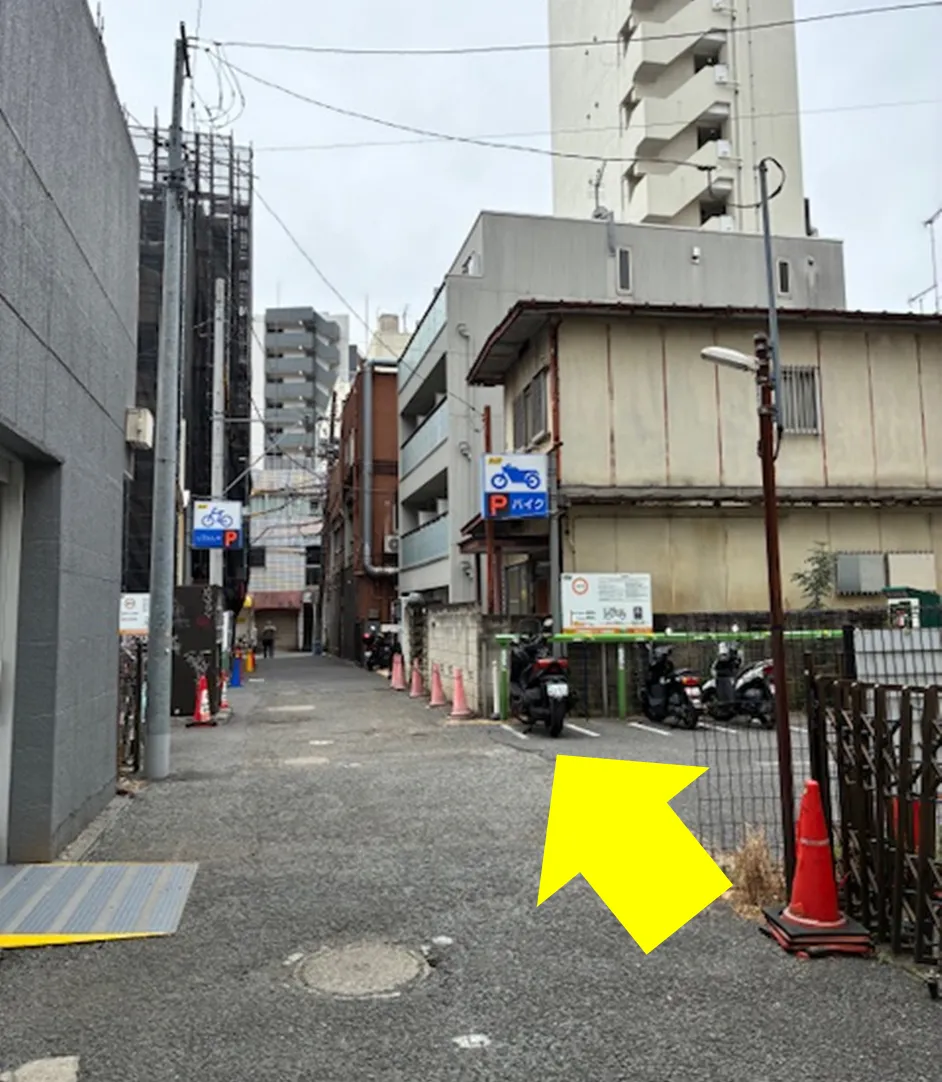 ⑯右手バイクの駐輪場の先のマンションの1F