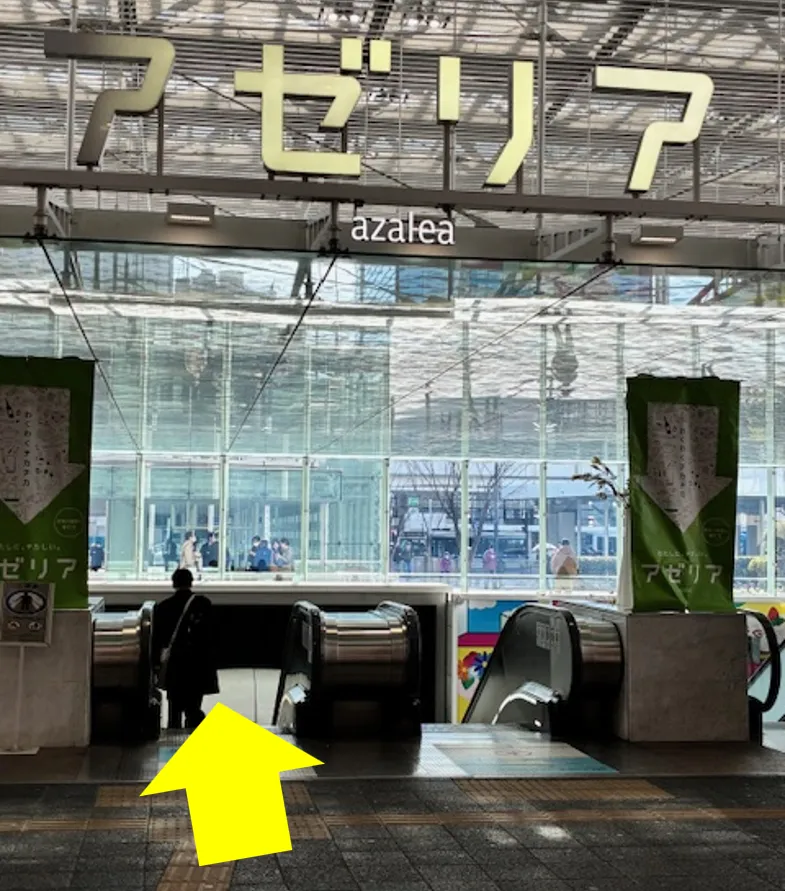③地下街(アゼリア)へ向かうエスカレータでさらに下ります。