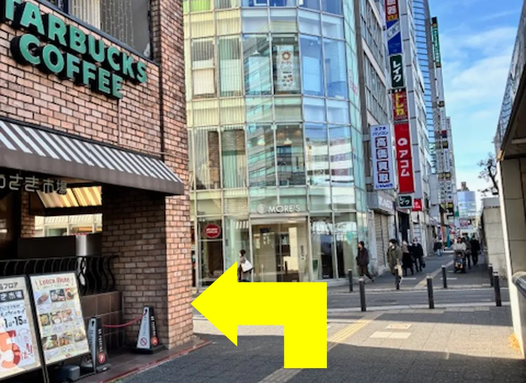 ⑨スターバックスの奥の道を左に曲がる