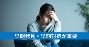 精神症状であれば、抑うつ、不安、焦燥感、絶望感など、身体症状では頭痛や倦怠感や不眠などで、一般的にうつ病の症状のそれに酷似している面もあります。